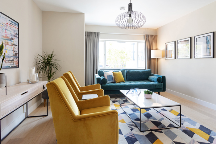 Working alongside Winterbrook for the second time, we were engaged to design the 4 bedroom duplex in their new housing development, Westminster Wood in Foxrock, Dublin 18. The architecture of the houses were very contemporary, so our client wanted to insure that the interior would work with the exterior. We created a concept that was contemporary but injected lots of colour and texture to appeal to our clients target market of first time buyers and downsizers.